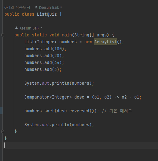 질문1) 내림차순으로 정렬하는 Comparator를 만들고 List<Integer>를 정렬하라.