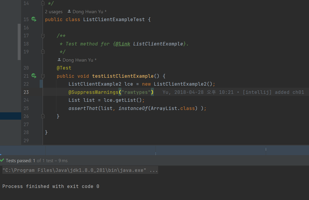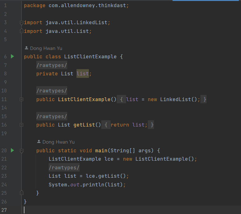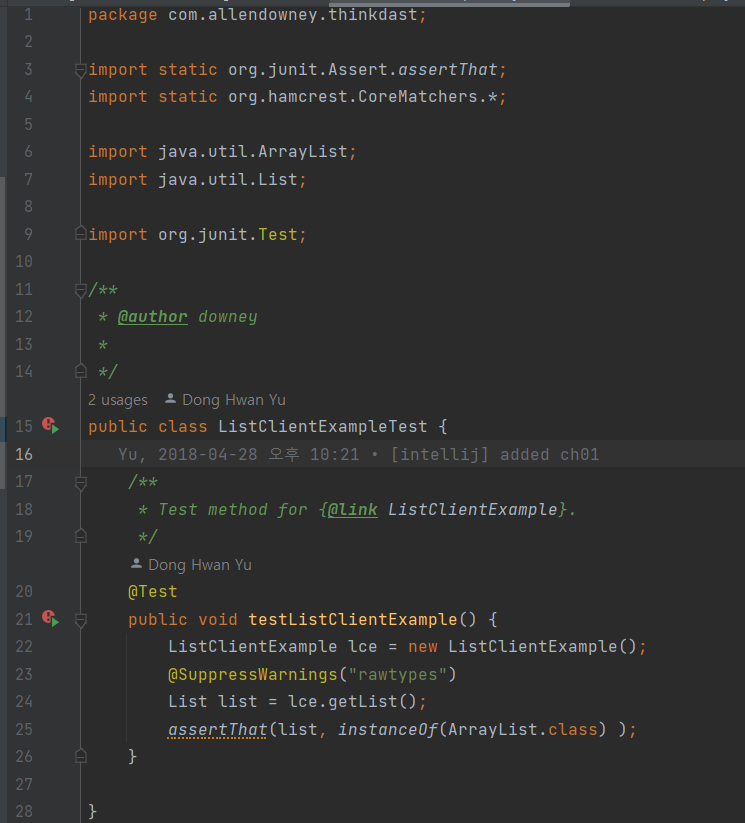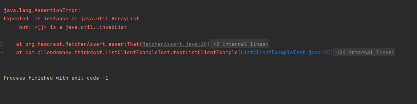 ArrayList가 아닌 LinkedList 클래스를 반환하므로 테스트에 실패한다.