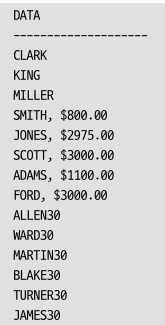 이제 E.NAME의 각 문자에 대해 행이 하나씩 있으므로 ITER.POS를 SUBSTR에 대한 매개변수로 사용하여 문자열의 문자를 탐색할 수 있습니다. ITER.POS는 행마다 증가하므로 E.ENAME에서 연속 문자를 반환하도록 각 행을 만들 수 있습니다. 이것이 바로 해법 예제가 작동하는 방식입니다.