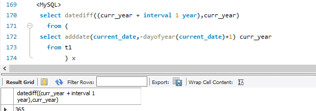 DATEDIFF 및 구간 연산을 사용하여 연도의 일수를 결정합니다.