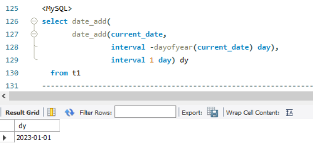 ADDDATE를 사용하면 현재 연도의 시작을 찾을 수 있습니다.