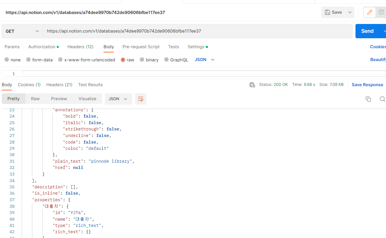 Header 에서 Notion-version을 맞춰준다 send로 날리면 데이터를 읽어온다.