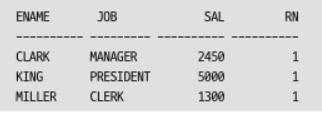 윈도우 함수 MAX OVER 및 MIN OVER를 사용하여 DEPTNO 및 JOB별로 최고 및 최저 급여를 찾습니다. 그런 다음 급여가 DEPTNO 또는 JOB별로 가장 높거나 가장 낮은 행을 남깁니다.