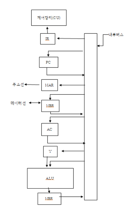 내부 버스는 레지스터와 ALU 같의 데이터의 이동을 위한 데이터선과 제어장치에서 발생되는 제어신호선으로 구성된다.