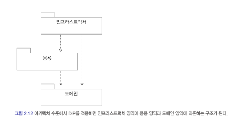 고수준 모듈이 저수준 모듈을 사용하면 앞서 계층 구조 아키텍처에서 언급했던 두 가지 문제, 즉 구현 변경과 테스트가 어렵다는 문제가 발생한다. DIP는 이 문제를 해결하기 위해 저수준 모듈이 고수준 모듈에 의존하도록 바꾼다. 비밀은 추상화한 인터페이스에 있다.