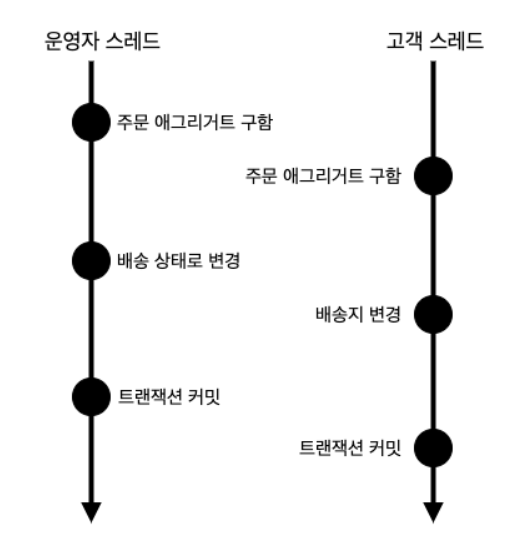 // 누군가 먼저 같은 주문 애그리거트를 수정했으므로,