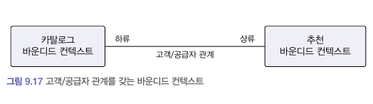 상류 컴포넌트는 일종의 서비스 공급자 역할을 하며 하류 컴포넌트는 그 서비스를 사용하는 고객 역할을 한다. 상류 팀과 하류 팀은 개발 계획을 서로 공유하고 일정을 협의해야 한다.