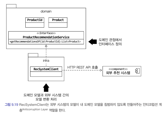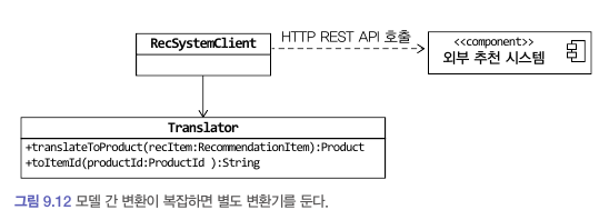 이 클래스는 외부 시스템과의 연동을 처리하고 외부 시스템의 모델과 현재 도메인 모델 간의 변환을 책임진다.