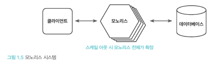 논리적인 단일체로서 아무리 작은 변화에도 새로운 버전으로 전체를 빌드해서 배포해야 한다. 그리고 일체식 애플리케이션은 단일 프로세스에서 실행된다. 사전에 성능을 감당하기 위해 스케일 업을 통해 용량을 증설해야 한다.