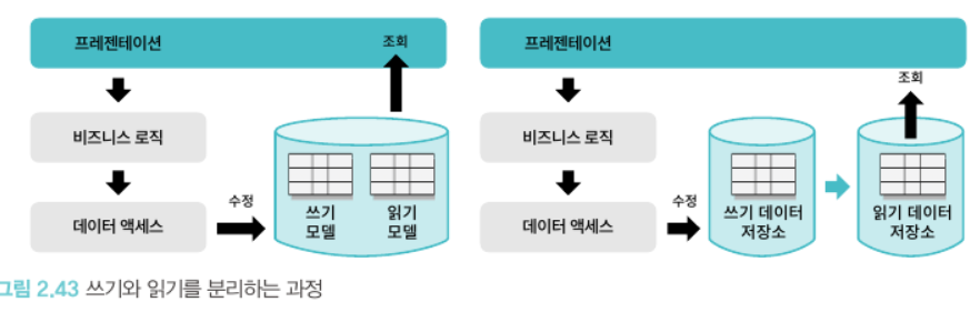 일반적으로 사용자의 비즈니스 요청은 크게 시스템 상태를 변경하는 명령과 시스템의 상태를 조회하는 부분으로 나눌 수 있다. 조회 요청이 훨씬 많이 사용된다.