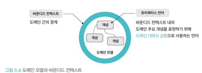 그렇지만 DDD에서는 이처럼 데이터를 기능과 분리해서 식별하지 않고 문제 영역인 하위 도메인마다 별도의 도메인 모델로 정의한다. 도메인 모델은 각 업무에 특화된 유비쿼터스 언어로 정의되고 그 업무에 특화된 개념으로 구성된다.