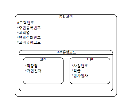 사원은 특정 계좌에 대해 관리사원.유치사원.주문사원 등 여러 가지 역할을 할 수 있다. 이때 여러 역할에 따른 엔터티가 개별로 존재하는 것보다 통합 엔터티로 존재하는 것이 바람직하다.