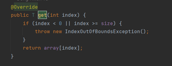 인덱스가 유효하지 않으면 예외를 던지는 get 메서드를 호출.