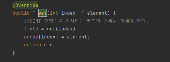 add(E) 메서드가 상수 시간이라면 add(int, E) 메서드는 어떨까요? add(E) 메서드를 호출한 후에 배열 일부에 반복문을 실행하고 요소를 시프트합니다. 이 반복문은 리스트의 끝에 요소를 추가하는 특별한 경우만 제외하면 선형입니다.