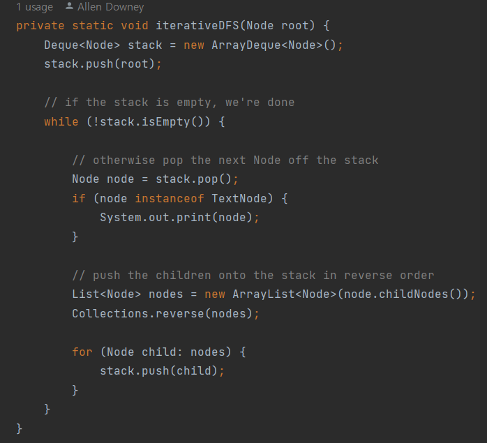 반복적 DFS의 장점은 자바 Interator로 구현하기 쉽다는 것입니다.
