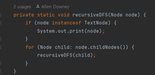 크롤러가 페이지를 다운로드하면 HTML 페이지를 파싱하여 본문과 링크를 추출해야 합니다. HTML 파싱의 결과는 본문과 태그 같은 문서 요소를 담고 있는 문서 객체 모델(DOM) 트리입니다. 이 트리는 노드로 이루어진 연결 자료구조로, 각 노드는 텍스트와 태그, 다른 문서 요소를 나타냅니다.