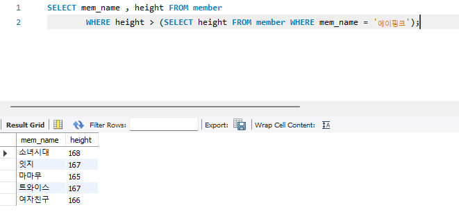 SELECT 안에 SELECT가 들어갈 수 있다. : 서브쿼리