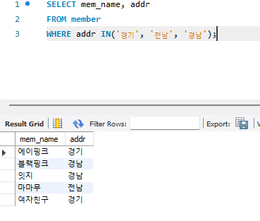 WHERE 조건식