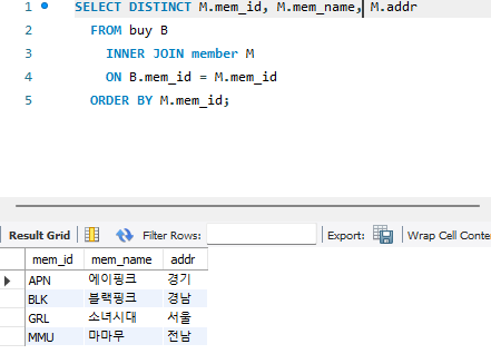 INNER JOIN <두 번째 테이블> --> 그냥 JOIN으로 써도 인식됨.