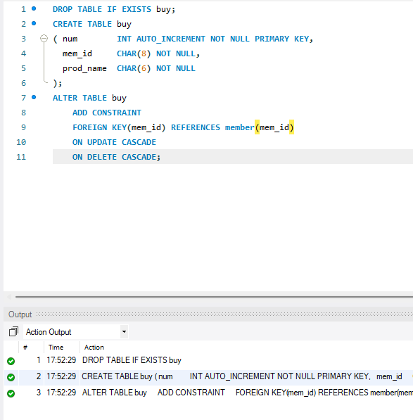 CREATE TABLE에서 설정하는 외래 키 제약조건