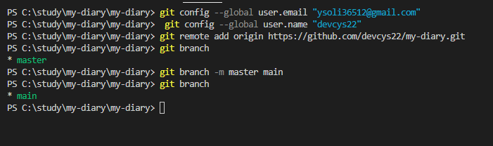 여기까지 잘 하고 원래 올리던대로 github에 올리는 git과 github의 branch 이름이 달라져서 main과 master로 2가지가 생기는 문제가 발생했다.