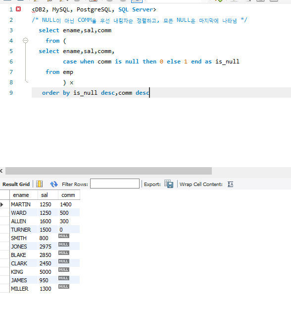 쿼리 결과를 정렬하는 것은 SQL 사용자의 핵심 기술 중 하나입니다. 각 해법에서의 미묘한 차이를 이해해야 합니다.